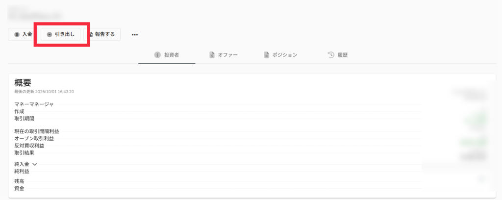 | 引き出し | MACSへ預けている資金を引き出すことができます |