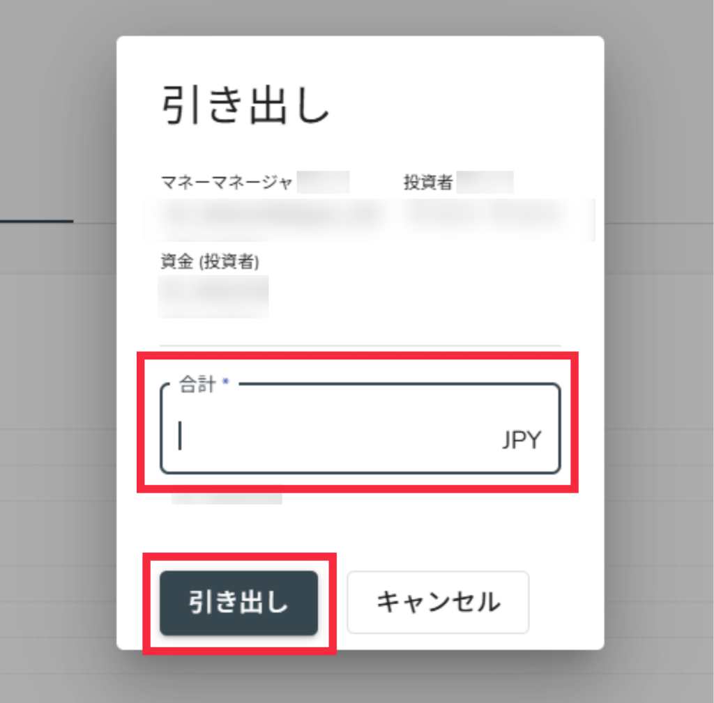 資金を一時的に引き出したい場合、「引き出し」を利用して資金の引き出しを行えます。