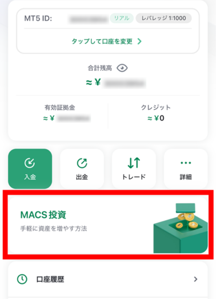 該当するMACSアカウントを選択することで、MACSの投資概要を確認できます。